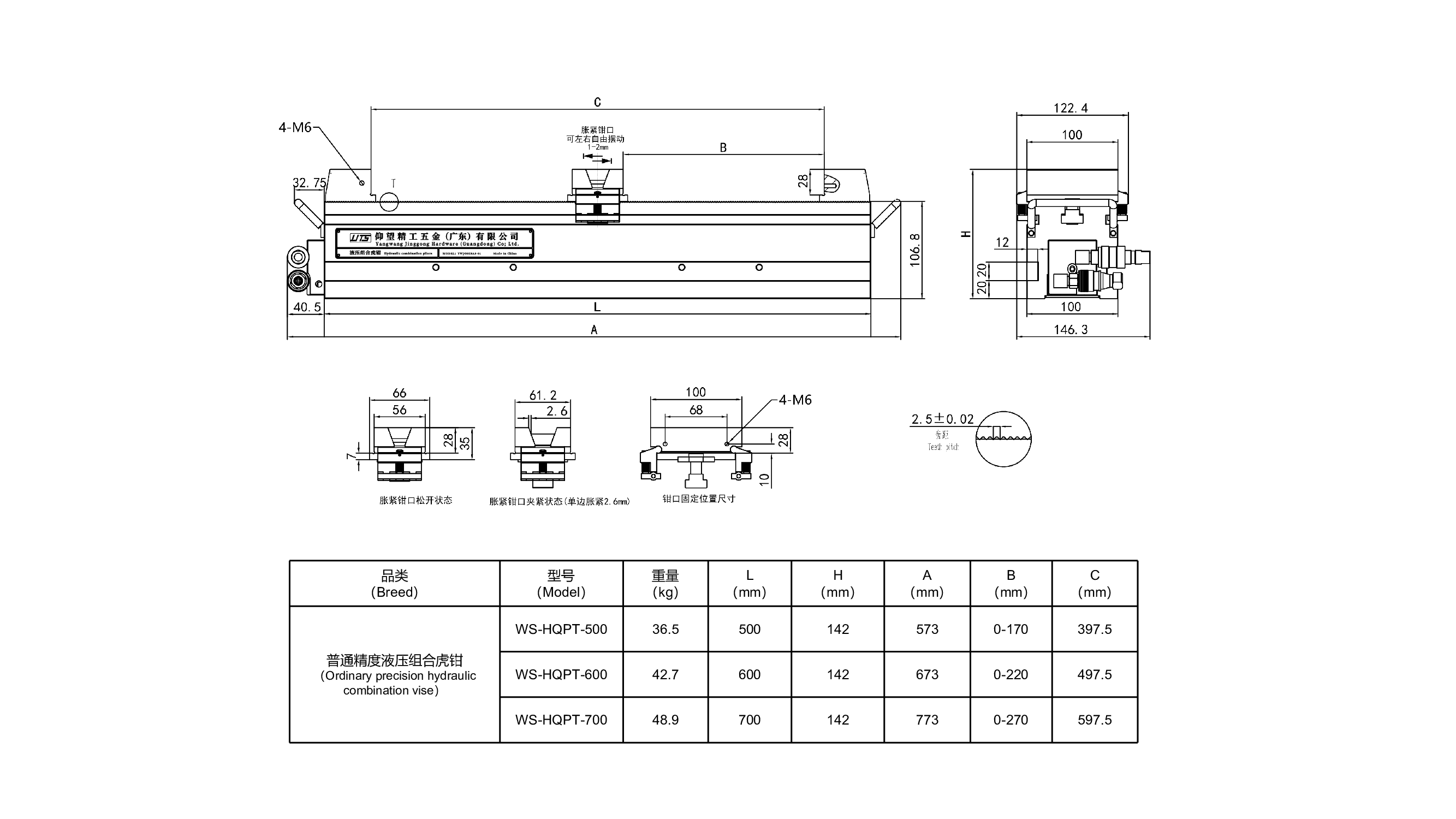 夹持范围大,适合大工件 平行精度≤0.05mm,重复精度<0.02mm